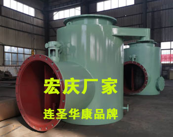 4、分匯器是一個(gè)三通閥,通過導(dǎo)向板的切換可使膠球進(jìn)入需要清洗的一側(cè)凝汽器中工作。一般一臺(tái)機(jī)組需兩臺(tái)分匯器,其進(jìn)口通徑為DN100,分配口為DN89,膠球投用時(shí)可通過窺視窗觀察運(yùn)行情況。FH型分匯器(清潔海綿膠球切換三通管閥)