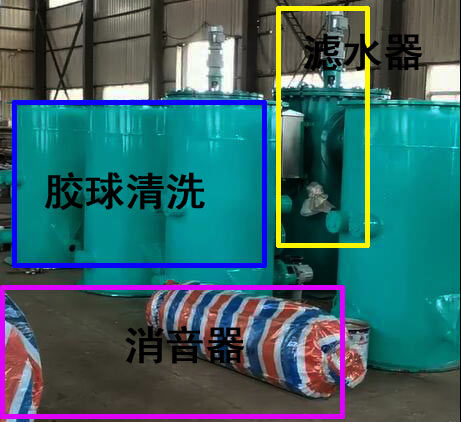 3、裝球室:裝球室是膠球清洗裝置中用于放球、取球、存儲(chǔ)和觀察膠球循環(huán)情況的裝置:它由外殼、漏斗、切換閥等部件組成,并配有觀察窗、放氣閥、放水閥。ZQS型裝球室(膠球存儲(chǔ)器)